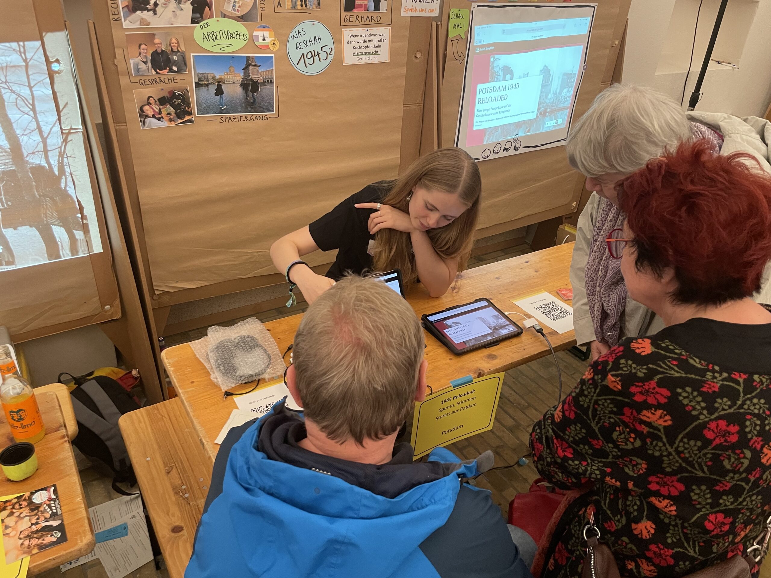 Was? Interaktive Präsentation des Verlaufs und der Ergebnisse des Projektes „Potsdam 1945 reloaded“ sowie kurze Gesprächsrunde mit einer unserer Zeitzeugin Ursula Weyrauch und anschließendem Austausch bei Snacks und Getränken
